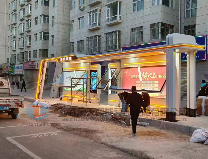 現(xiàn)代候車(chē)亭發(fā)貨安裝現(xiàn)場(chǎng)